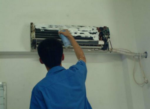 | 株洲市空调维修师傅给株洲市用户上门维修清洗空调。 |